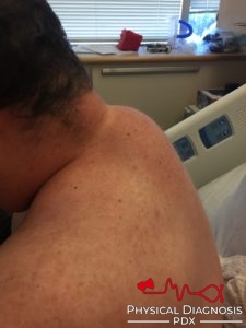 This should generate a hypothesis. Yoo you look for other specific physical findings. What do you notice in this video?