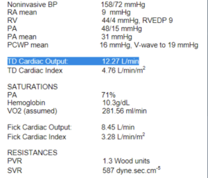 The combination of high-output physiology and HF should generate a new hypothesis. You test your hypothesis with right heart catheterization.