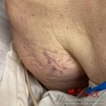 The thin skin associated with Cushing’s syndrome makes these patients susceptible to easy bruising.