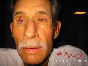 In a patient who previously underwent surgery for ocular melanoma and now has a glass eye, the presence of unilateral icterus (of the normal eye) should raise suspicion for subsequent development of liver metastases.