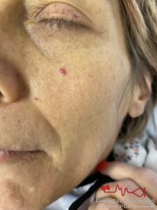 This is a middle-aged woman with hereditary hemorrhagic telangiectasia who was admitted to the hospital for an unrelated reason.