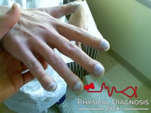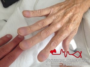 This is a middle-aged man with cirrhosis complicated by hepatopulmonary syndrome with digital clubbing.