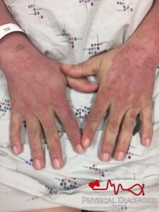This is a middle-aged man who presented with progressive weakness and was found to have dermatomyositis.