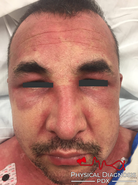 This is a middle-aged man who presented with progressive weakness and was found to have dermatomyositis.