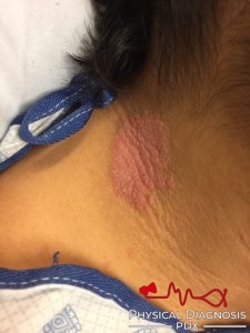 This patient also has an oil drop sign.