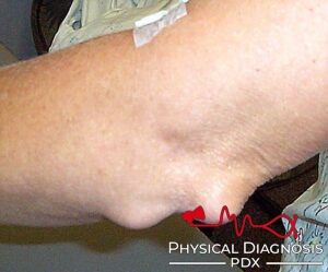 This patient has rheumatoid arthritis and classic rheumatoid nodules.